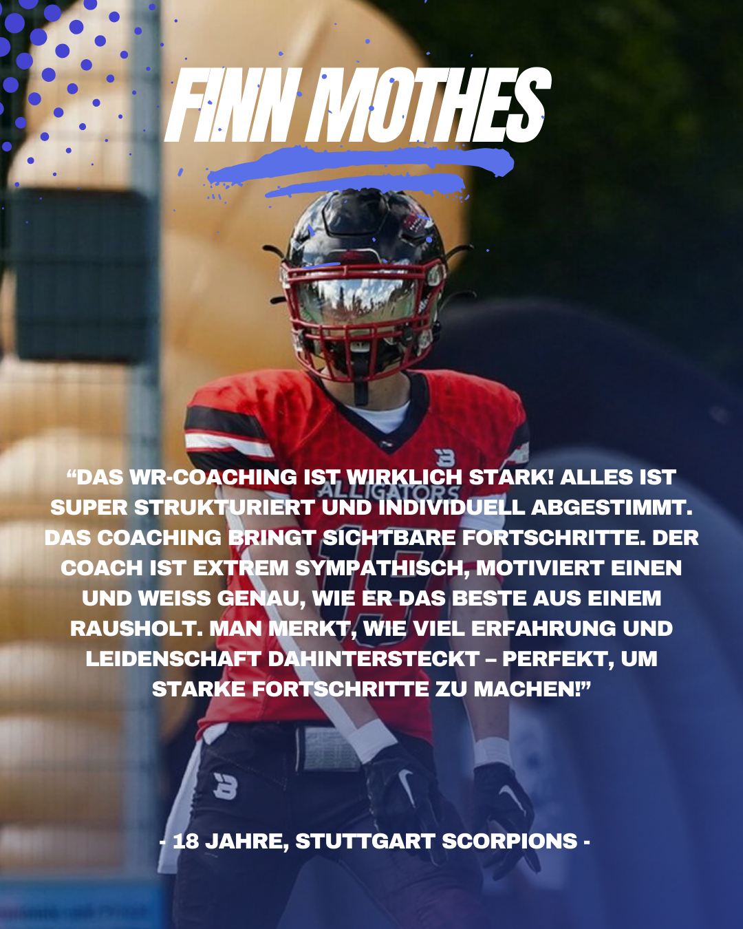 Mein Ziel mit WideOutworker ist es, jungen, ambitionierten Receivern aller Leistungsniveaus ein Training zu bieten, das ihnen hilft, sich weiterzuentwickeln und sich in allen Aspekten dieser Position zu verbessern.